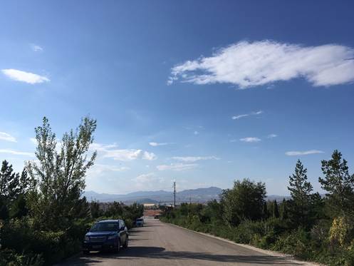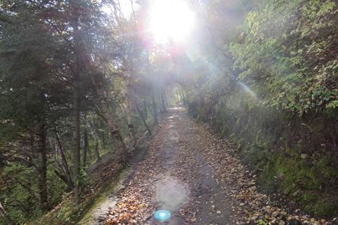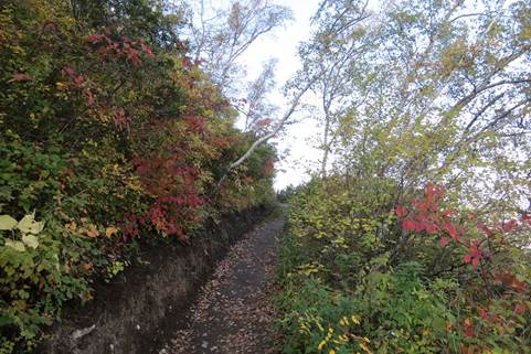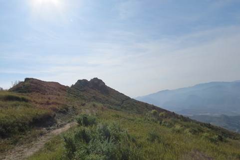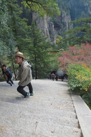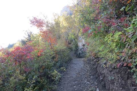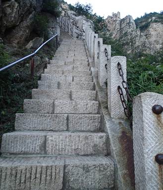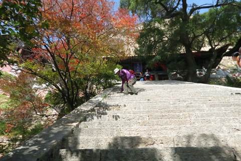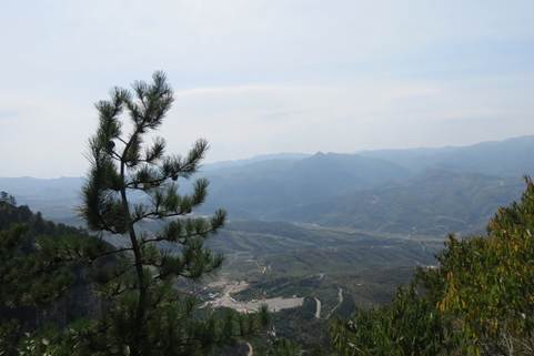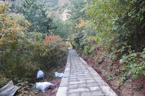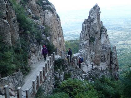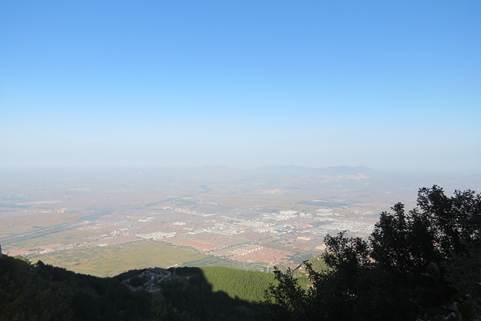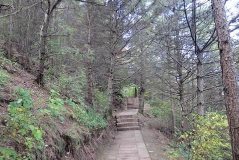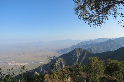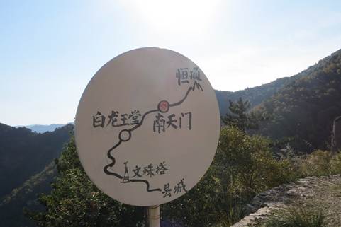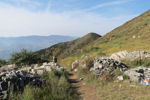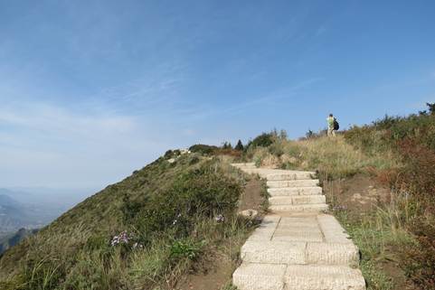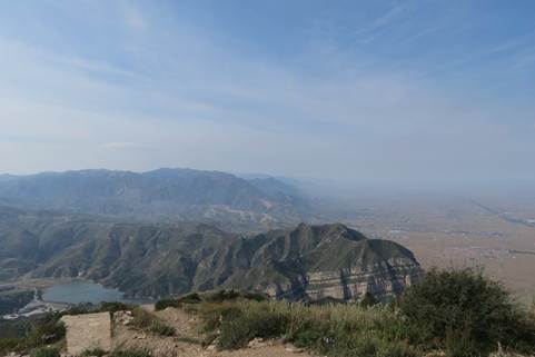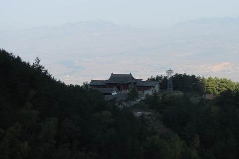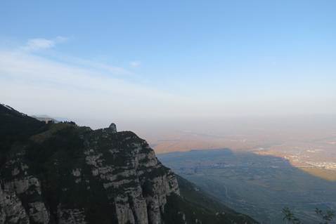 過觀後方是土路,直行是石階,土路屬後半段,屬之字型上坡,沿途風景秀麗,可鳥瞰整個渾源縣,出稜線後有指示,不久就到恒頂了。